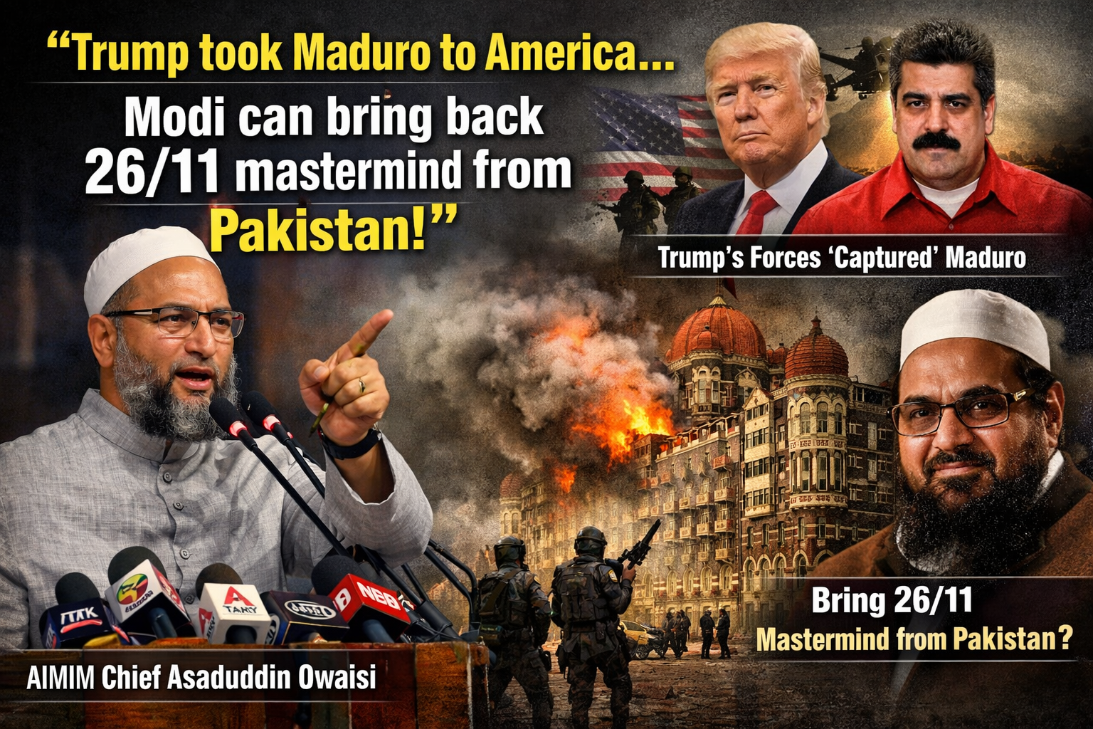 Owaisi’s Sharp Attack on Centre: 26/11 Mastermind Should Be Brought Back Like Maduro, Says AIMIM Chief